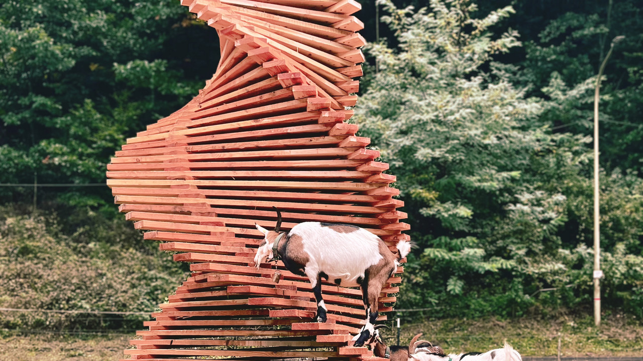 Gesucht wurde ein Kletterturm für Ziegen, der artgerechte Nutzung, innovative sowie reversible Holzbauweise und damit Nachhaltigkeit verbindet. Europaweit reichten Architekturstudierende ihre Entwürfe ein. Am 5. August tagte die Jury, bestehend unter anderem aus baunetz-Chefredakteurin Friederike Meyer und Benjamin Widmer, Gründer des renommierten Zürcher Architekturbüros bernath+widmer, und zeichnete zwei Arbeiten aus: